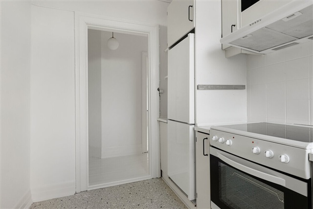 Entréen rummer en rummelig garderobeløsning, der giver rig mulighed for opbevaring. Boligen byder på to smukke stuer, som skaber gode opholdsmuligheder. Badeværelset er udstyret med brus samt et imponerende opbevaringsareal. Soveværelset vender ud mod den rolige gård. Køkkenet er veludstyret med talrige skabe, hvilket sikrer god plads til køkkenudstyr og proviant. Der findes desuden et separat toilet.Ejendommen er forsynet med en dørtelefon, og i kælderen er der både vaskefaciliteter samt ekstra opbevaringsrum. Opgangen fremstår meget velholdt, og ejendommen i sig selv er særdeles præsentabel. Der er mulighed for at erhverve en parkeringsplads, hvis denne er ledig. Oppe på beboelsesniveauet hersker der en fredelig stemning, selvom der findes erhvervsaktiviteter i ejendommens nederste del.