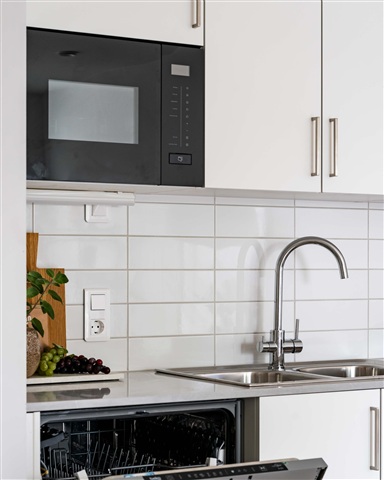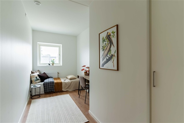 The apartment, located on the 3rd floor, offers a bright and open kitchen/living area that serves as the natural gathering point. Here you will find room for everyday life as well as cozy moments with family and friends. From the living area, you have direct access to a charming south-facing balcony – the perfect spot to enjoy the sun.