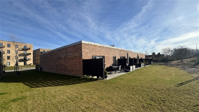 Udendørs byder boligen på to fine terrasseområder samt et fritstående skur, der egner sig til cykler og opbevaring. Den overskuelige ét-plans planløsning med entré/bryggers og teknikrum gør det let at holde orden og skaber et komfortabelt hverdagsliv.