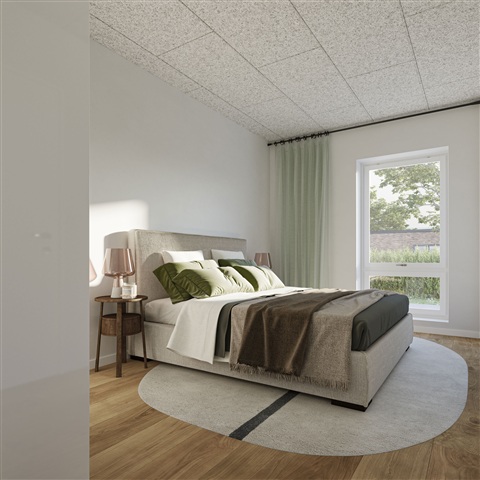 Soveafdelingen består af et lyst soveværelse samt et yderligere værelse, der kan tilpasses efter behov som børneværelse, kontor, gæsteværelse eller hobbyrum. Boligen byder desuden på et moderne badeværelse og en rummelig entré/bryggers, som tilsammen sikrer en effektiv morgenrutine og gode opbevaringsmuligheder.