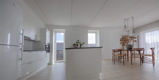 - Indbygningsovn, induktionskogeplade og køleskab med frys.