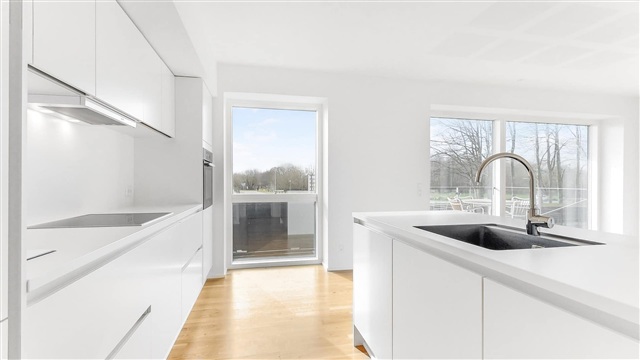Teglgårdshaven repræsenterer muligvis det mest markante og prestigefyldte boligprojekt nogensinde i Viborg. Placeringen er vanskelig at overgå; alle, som kender til området omkring Søndersø fra gå- eller løbeture, vil finde den let genkendelig. De nye, arkitektonisk imponerende bygninger opføres i umiddelbar nærhed af Søndersøs hjørne, hvor de karakteristiske røde bygninger i årenes løb var hjemsted for den velkendte Viborg-maler Lasse Winsløw fra 1953 til 2006. Projektet er udført med stor respekt for områdets historik og den oprindelige Teglgård. Nabo til bebyggelsen er Strandparken, der tilbyder både slæbested og bådpladser. Denne placering på byens yderkant ud mod naturen er svær at finde lige så idyllisk.I hvert af de tre punkthuse findes 11 lejligheder, og den lejlighed, der omtales her, ligger på anden sal og har et areal på 107 m2. Boligen rummer to værelser, et badeværelse samt et integreret køkken og stueområde, hvorfra der er en storslået udsigt over Søndersø. Inventaret stammer blandt andet fra HTH og Miele, hvilket sikrer en høj kvalitet i boligindretningen. Der er mulighed for at få tilladelse til at holde husdyr i lejligheden.