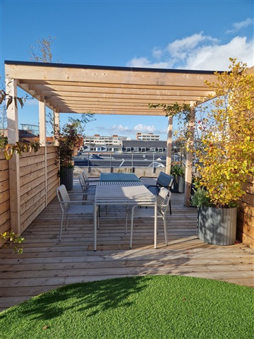 Hele ejendommen er gennemgribende renoveret, og det kan fremhæves, at der er elevator, to fælles tagterrasser og et stort fælleslokale, hvor der er dedikerede studie/arbejdspladser, loungeområde samt mulighed for fællesspisning i det store køkken og spiseområde.