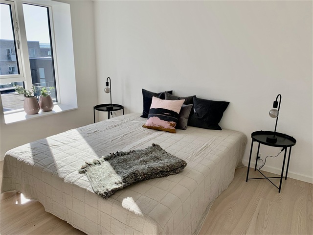 Denne lejlighed byder på 73 kvadratmeter, fordelt på 2 værelser. De store vinduer sikrer et dejligt lysindfald, og der er fokus på funktionalitet og moderne materialer.