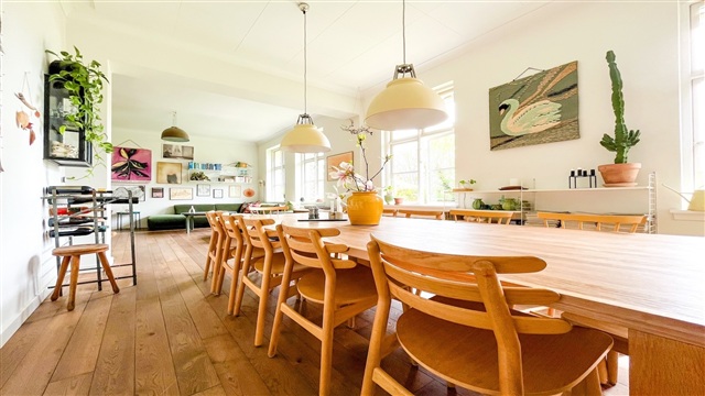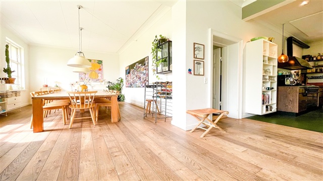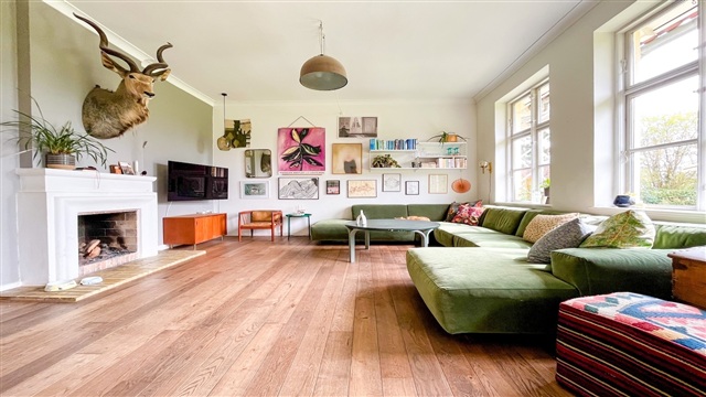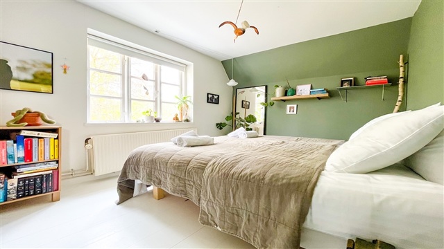 På en stille isoleret vej, ved Bernstorff Slot og park, ligger dette hyggelige lejemål i et halvt dobbelthus. I stueetagen er der en stor lys entre og et badeværelse med bruseniche samt et godt soveværelse. Videre i stueetagen er husets hjerte, et stort hyggeligt køkken der er i åben forbindelse med et stort spiseområde samt stuen. Her er der højt til loftet og dejligt lyst, med sol det meste af dagen. I stuen er der ligeledes en hyggelig pejs og udgang til den dejlige sydvendte have. Haven er meget stor og deles med ejer af ejendommen. Der er dog en privat træterrasse til lejemålet. På husets førstesal er der et lille rum foran værelserne, der kan bruges til kontorplads. Tre gode soveværelser, hvoraf det ene har indbyggede egetræsskabe. På førstesalen er der ligeledes endnu et badeværelse med badekar og vaskemaskine/tørretumbler. Huset er beliggende i den smukke Bernstorff Slotspark. I kort afstand til offentlig transport samt gode skoler og indkøbsmuligheder.