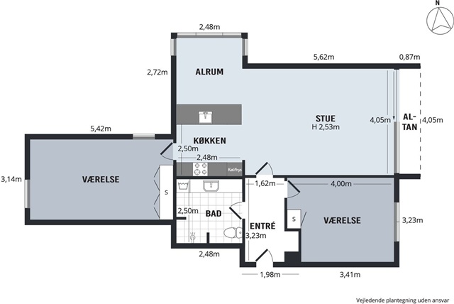 Denne treværelses lejlighed, som er indflytningsklar og fremstår i flot stand, ligger tæt på de naturskønne områder Frederiksberg Have, Søndermarken og Valby. Boligen er beliggende i en nyere ejendom fra 2001, der er moderne opført med god plads omkring bygningen. Her er flere praktiske faciliteter såsom grønne fællesarealer, en legeplads, elevator, opbevaringsrum samt cykelparkering. Parkering indenfor ejerforeningen tilbydes efter først til mølle-princippet.I selve lejligheden er der en rummelig entré med plads til overtøj, et badeværelse med bruseniche og vaskefaciliteter samt to gode soveværelser. Køkkenet og stuen er kombineret i et stort åbent rum, hvor køkkenet har en hyggelig karnap, og stuen prydes af store vinduespartier med direkte adgang til altanen. Det skal bemærkes, at altanen i første kvartal af 2026 vil blive udvidet til den dobbelte størrelse.