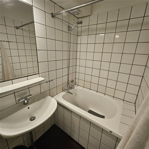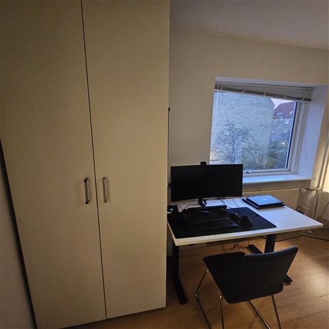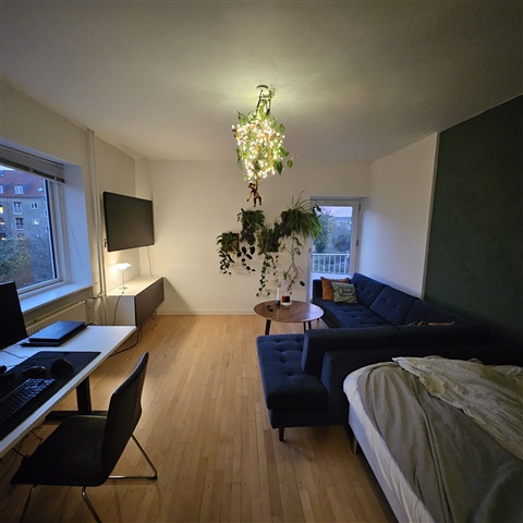 Lejligheden har ét stort rum med skrivebord, seng, sofa, fjernsyn og klædeskab.Ligger 3 min fra netto of 5 min fra stationen.