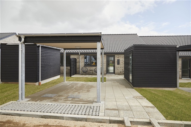 Rækkehusets indretning byder på en lys og moderne atmosfære med en entré, som fører videre til to rummelige værelser samt det kombinerede køkkenalrum og opholdsrum. Køkkenet fremstår åbent og lyst, udstyret med en køkkenø og rigelig plads til et spisebord. Derudover er der mulighed for at etablere et hyggeligt hjørne med sofa. Fra køkkenalrummet er der adgang til et separat bryggers, hvor vaskefaciliteter til vaskemaskine og tørretumbler kan placeres, samt videre adgang til badeværelset. Stueområdet forbinder til et stort soveværelse med en integreret skabsvæg. Gennem det brede vinduesparti i stuen er der udgang til en stor terrasse og egen have.Til boligen hører en privat have og terrasse samt et redskabsrum på 9 m². Til parkering er der en enkelt parkeringsplads ved boligen med vognly. Alt forbrug afregnes direkte mellem lejer og forsyningsselskaber.