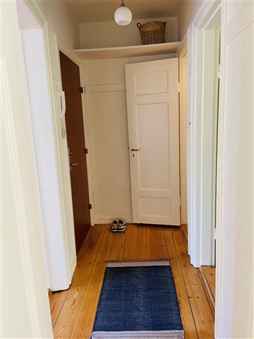 Indendørs prydes lejligheden af lyse trægulve og vægge sammen med hvide lofter, hvilket skaber en lys og indbydende atmosfære. Fra køkkenet er der adgang til fælles faciliteter som det fællesareal, cykelkælder, vaskekælder og et separat kælderrum til opbevaring.