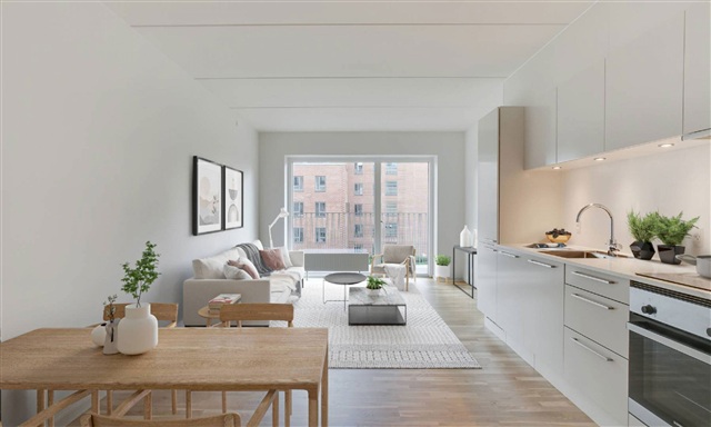 De 3-værelses lejligheder er ideelle til både par og mindre familier, der ønsker en moderne bolig med plads til samvær og ro. Planløsningen byder på to gode værelser, et lyst opholdsrum og et køkken i åben forbindelse, som gør rummet indbydende og socialt. Badeværelset er opført i lyse materialer, og flere boliger har egen altan eller terrasse.