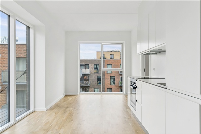 Ejendommene indeholder små og større lejligheder med store rum – og masser af dagslys.Til alle lejligheder hører enten altan eller fransk altan, og i stuelejlighederne kan man indrette sig i de helt særlige dybe, udvendige vinduesrammer udformet som enten bænke, franske altaner eller plantekasser.Midt i det hele åbner det hyggelige gårdrum sig op med siddemiljøer, beplantninger og stisystemer i forskellige niveauer – her kan børnene lege og man kan mødes med sine naboer.På taget af Laxnesshus, dér hvor bebyggelsen kun er tre etager høj, ligger den store, fælles tagterrasse med væksthus for alle beboerne. På tagterrassen er man i læ og omgivet af de omkringliggende bygninger og bylivet nedenfor. En unik urban oase.Der vil i forbindelse med anmodning om leje af boligen, blive fortaget en kreditvurdering af kommende lejer ved anvendelse af CPR-nummer. Det er ikke tilladt at være registreret i RKI, hvis man vil leje en bolig.OBS! Billederne er ikke fra den specifikke bolig.