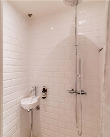 Badeværelset er pænt og praktisk indrettet, og alle rum fremstår imødekommende og lette at møblere.