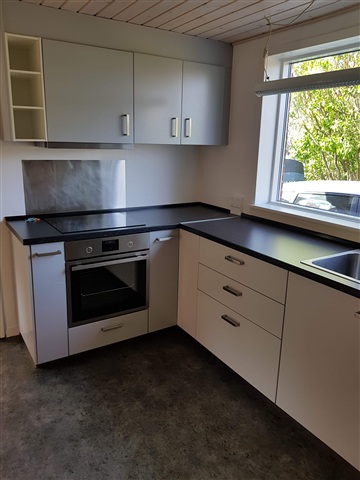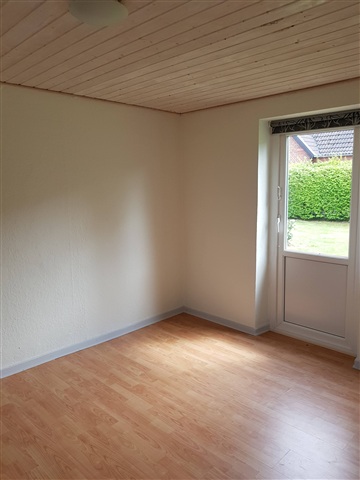 Huset opvarmes med fjernvarme, der er installeret brændeovn I stuen. Udgang til terasse fra stuen, samt udgang fra det bagerste værelse.Der er to badeværelser- 1 i stueetagen , samt 1 på 1. Sal med badekar.