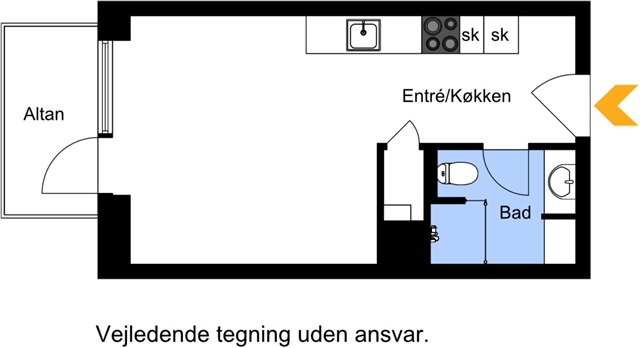 Bemærk venligst ift. plantegningen: Der er terrasse og ikke altan i denne lejlighed, som er beliggende i stueplan.