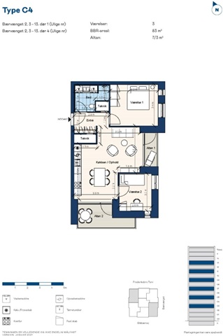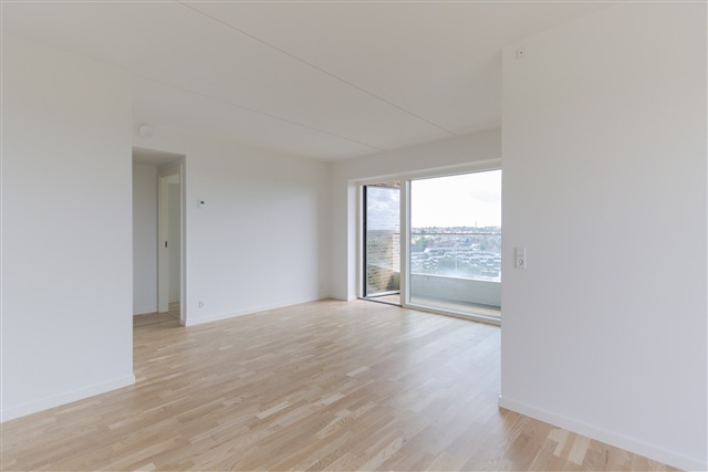 Højtbeliggende 3-værelses lejlighed med to altaner. Lejligheden har et dejligt køkken-alrum med udgang til begge boligens altaner, hvor du kan nyde en rolig udestund.