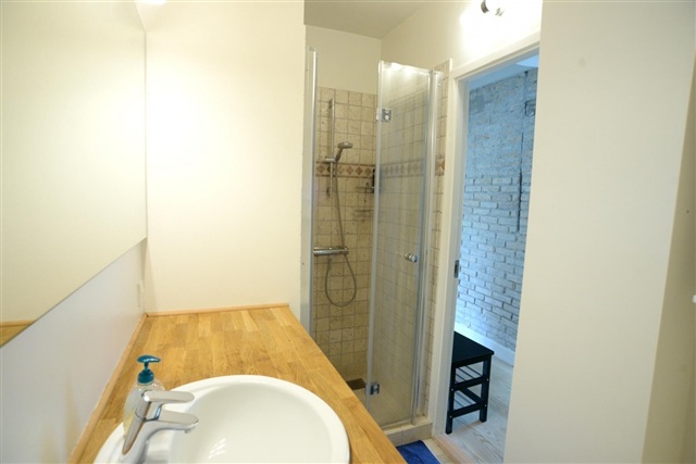 Et stort soveværelse, et stort køkken, et normalt badeværelse, vaskemaskine og opvaskemaskine.