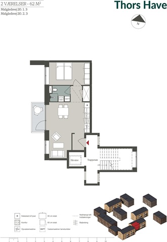 I Thors Have kan du finde den lejlighed, som passer til netop dine behov. Boligområdet byder på alt fra, velindrettet toværelses lejligheder på 53 m² til fireværelses lejligheder på 99 m² -, alle med store altaner eller terrasser.