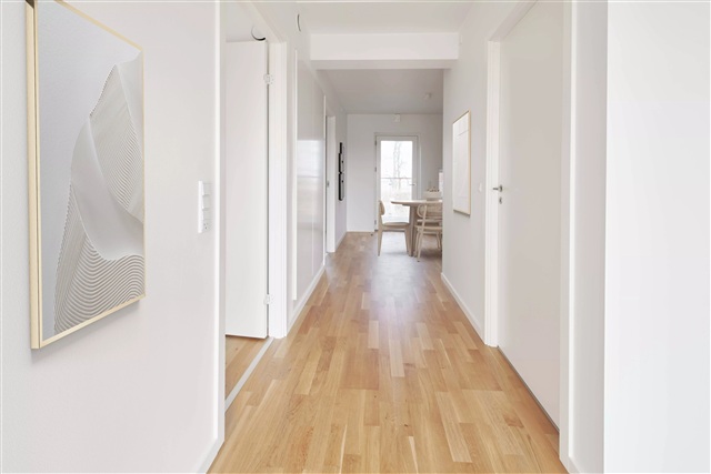 På grund af det optimale forhold mellem brutto- og nettoareal, hvor der ikke fragår mange kvadratmeter til trappearealer og lignende, er lejligheden noget mere rummelig end andre lejeboliger med samme bruttoareal.