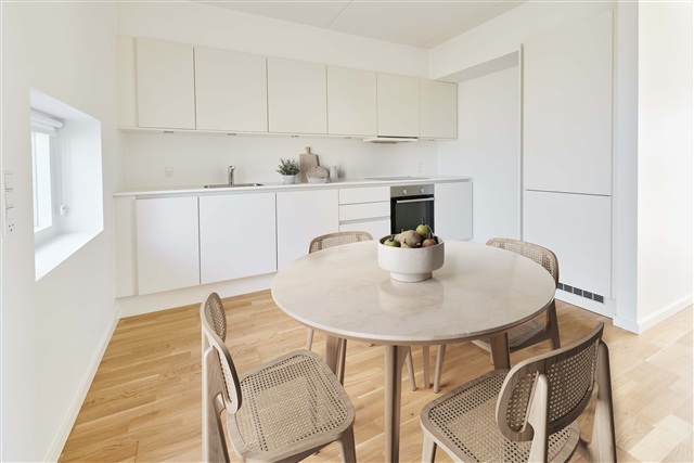 Overalt i lejligheden er der gulvvarme, og ved indflytning medfølger alt i hårde hvidevarer inkl. opvaskemaskine og kombineret vaskemaskine og tørretumbler.