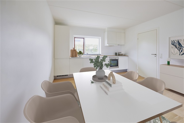 • Køkken-alrum med et skønt lysindfald og alt i hårde hvidevarer