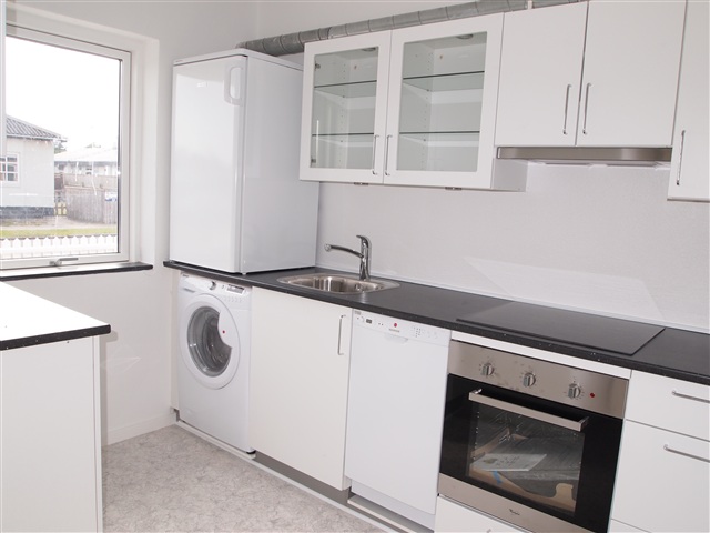 Nyistandsat hyggelig 1 værelses lejlighed.Entre med skabe, badeværelse med bruser, Viva Kvik-køkken med bl.a. keramiske plader, opvaskemaskine, vaske-tørremaskine m.v. Stor stue med udgang til egen lille vestvendt terrasse med cykelskur.