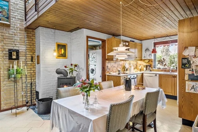 Velkommen til en bolig med masser af plads og en skøn, grøn ramme om hverdagen. Huset byder på 170 veludnyttede kvadratmeter fordelt på 4 værelser (mulighed for at etablere et ekstra værelse), hvor planløsningen kombinerer gode opholdsrum, fleksible værelser og hyggelige kroge – ideelt til jer, der ønsker både albuerum og atmosfære.I stueplan mødes du af et stort køkken/alrum med god skabs- og bordplads og opvaskemaskine. Trælofter, murstensdetaljer og en brændeovn skaber en varm og indbydende stemning omkring spisebordet. Der forefindes endvidere en kummefryser i viktualierummet. Herfra er der forbindelse til en lys opholdsstue med brede vinduespartier mod haven og franske døre, der trækker dagslyset ind. Fra stuen er der adgang til en charmerende udestue, der forlænger sæsonen og åbner til en terrasse og den grønne have. Stueetagen indeholder endvidere et rummeligt soveværelse samt stort badeværelse med både bruseniche og badekar. Derudover fuldender et gæstetoilet og bryggers etagen nedenunder. Der er desuden en praktisk vaskesøjle med vaskemaskine og tørretumbler.