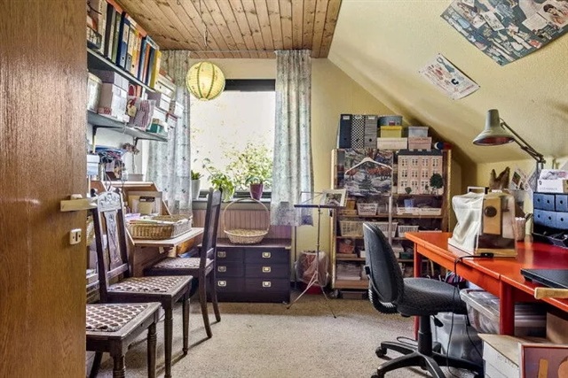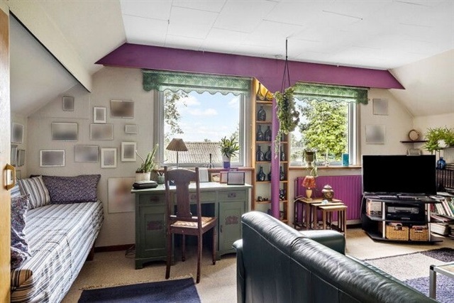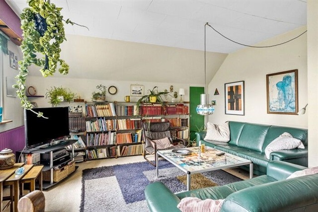 På førstesalen finder du yderligere gode opholds- og værelser med skrå vægge og hyggelig indretning – oplagt til soveværelser, hjemmekontor, gæsteværelse eller hobbyrum.