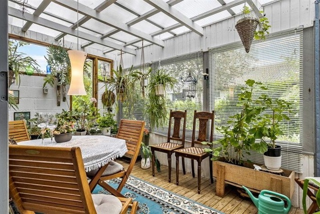 Udenfor får du en velanlagt, frodig have med græs, frugttræer, buske og blomsterbede, et drivhus til egne krydderurter og grønt samt flere solrige kroge til afslapning. Den overdækkede indgang og den flisebelagte terrasse giver lune opholdspladser i læ, og der er garage samt parkering lige ved huset.