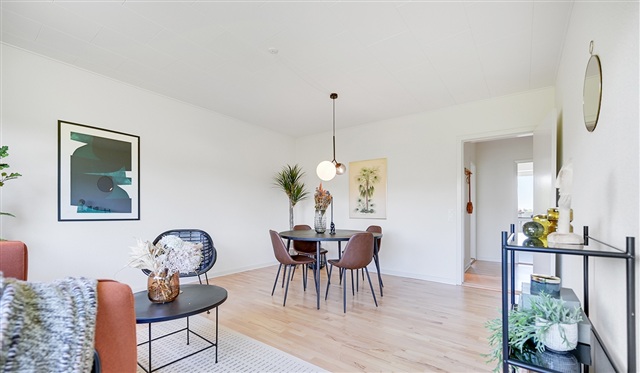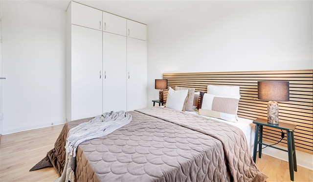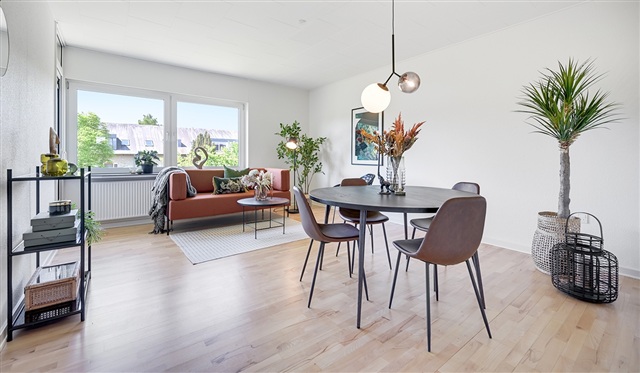 Lejligheden fremstår lys, indbydende og yderst velholdt – og de gode, regulære rum giver en rigtig behagelig og funktionel indretning.