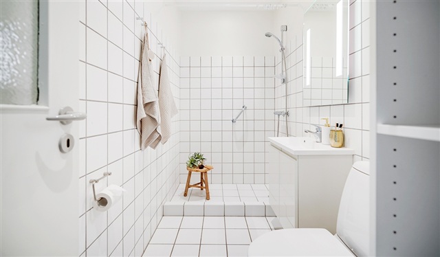 * Dejligt badeværelse med separat bruseniche og god plads til opbevaring