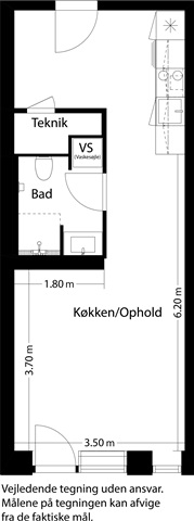 Denne moderne 1-værelses lejlighed byder på et nyt køkken der indeholder både opvaskemaskine, kølefryseskab, ovn, keramisk kogeplade og emhætte. Derudover er der et praktisk depotrum med plads til opbevaring. Badeværelset er også moderne, og udstyret med både vaskemaskine og tørretumbler.