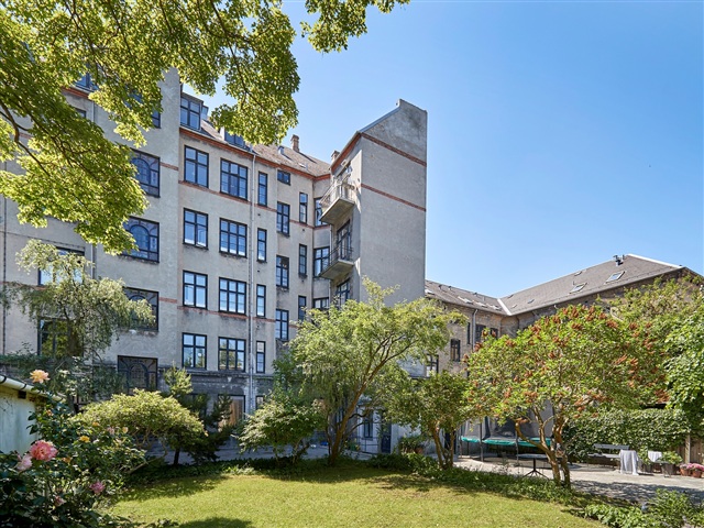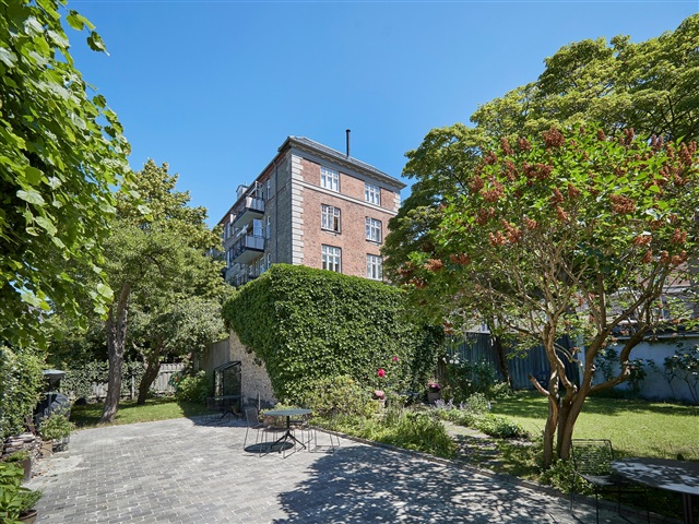 Ejendommen er en klassisk Frederiksberg-ejendom opført i 1907 i gule mursten og med karnapper. Indgangen til lejlighederne sker via elevator eller af en bred og charmerende opgang med flot glasmosaik og store, markerede mahognidøre. Baggården består dels af et asfalteret område, men også af et større grønt areal med plads til fællesaktiviteter. Der er desuden et cykelskur.Ejendommen har en af områdets bedste beliggenheder – placeret på solsiden af den mondæne og charmerende Frederiksberg Allé, tæt på Sankt Thomas Plads. Området er særdeles attraktivt på grund af den smukke og centrale beliggenhed i det klassiske Frederiksberg-kvarter. Fra ejendommen er der gåafstand til både indkøbsmuligheder, skole og offentlig transport, herunder Metro Cityringen i fornuftig afstand. Der er mulighed for parkering langs Frederiksberg Allé samt i de omliggende sidegader.