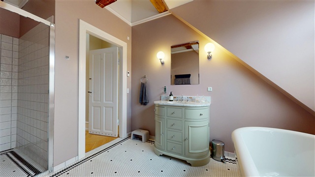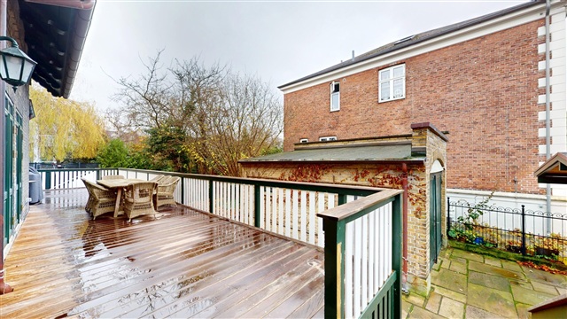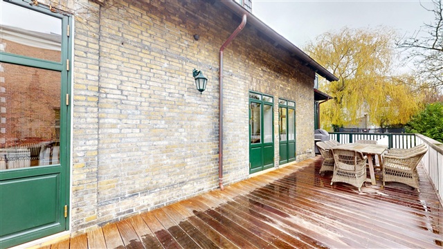 Terrassen er boligens naturlige udendørs samlingspunkt. Her får du sol, luft og masser af plads til både loungeområde, spisebord og planter. Det er et uderum, der gør sommeren længere og opholdene mere afslappede. At have så generøs en terrasse midt på Frederiksberg er et privilegium, og her er den både privat, indbydende og utrolig anvendelig.