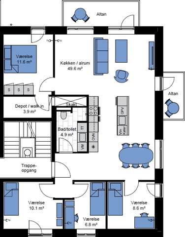 Badeværelserne er udstyret med gulvvarme samt vaskemaskine og tørretumbler.