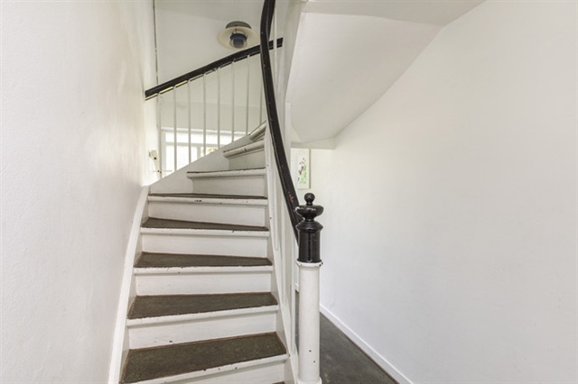 Bag den i facaden centralt placerede hoveddør er den fælles hall med dør til stuelejligheden og trappe til 1. sal.