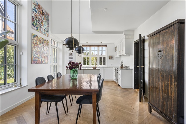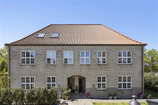 Ejendommen, opført i 2020, fremstår i særdeles flot og eksklusiv stand med materialer af højeste kvalitet. Her er to halve dobbelthuse placeret under det fælles tag, hver med et areal på 184 m² og egen adgang til et privat havestykke. Boligen udlejes umøbleret og på en tidsubegrænset lejekontrakt.Indgangen byder på en præsentabel entré med walk-in garderobeskabe og adgang til husets trappe op til første sal samt videre til et sammenhængende og åbent opholdsrum. Stuen, der har en L-form, glider sammen med køkkenet, hvoraf der er hele tre udgangsdøre til haven. Spisestueområdet kendetegnes ved dobbelt loftshøjde, hvilket sammen med det rige naturlige lys skaber et lyst og indbydende rum. Boligen rummer desuden plads til både spise- og opholdsstue, suppleret af et stort køkken med køkkenø. På stueplanet findes også et gæstetoilet.