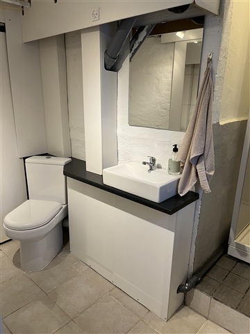 Hyggeligt værelse med eget køkken med opvaskemaskine, mini ovn og 2 kogeblus. Derudover eget badeværelse med bruseniche. Adgang til fælles vaskemaskine + tørretumbler i garage.Vi er et par i midten af trediverne med et barn på 7 år. Vores hverdag er meget stille og rolig, og derfor søger vi en lejer som er ligeså.