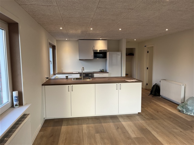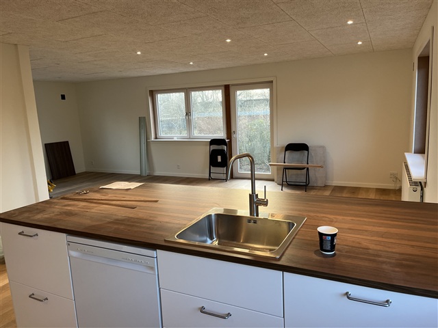 Totalrenoveret og indflytningsklar bolig på 95 m² med ca. 25 m² lys, brugbar kælder.Boligen har nye gulve, troldtekt-loft med spots og et flot, moderne køkken med køkkenø.