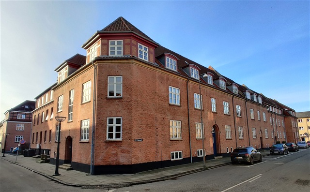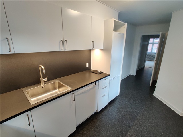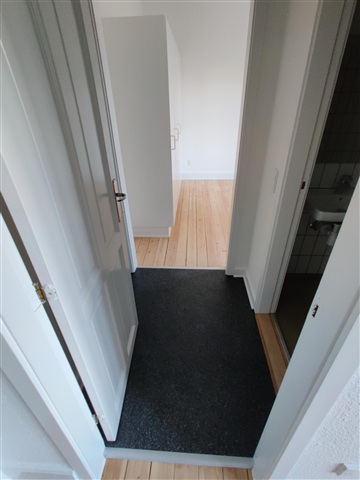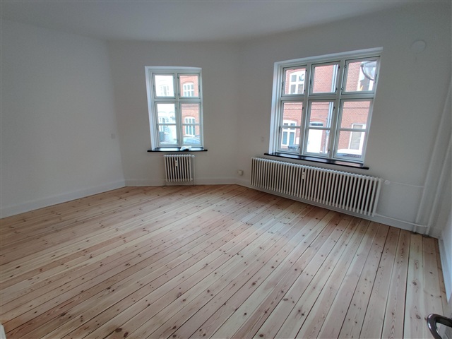 Denne lejlighed på 82 m² er beliggende centralt i Vejle midtby, med blot 15 minutters gang til stationen og kun 5 minutters afstand til Gågaden. Ligeledes findes dagligvarebutikker inden for fem minutters gåafstand. På trods af den centrale placering opleves en rolig atmosfære i boligen.Indretningen består af en entré, et depotrum, et køkken, to værelser, et soveværelse samt et badeværelse med toilet og brusebad. Fra entréen er der adgang til to af lejlighedens værelser, og badeværelset med bruser kan nås fra to værelser. Køkkenet har plads til et klapbord og er udstyret med indbygget ovn, kogeplader, køleskab med fryser og opvaskemaskine. De to værelser ligger i forlængelse af hinanden. Lejligheden har trægulve og fremstår i en charmerende, klassisk stil.