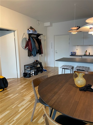 Denne 2-værelses lejlighed, der fremstår både moderne og velplanlagt, har en tiltalende altan mod vest og ligger nær Bruuns Galleri, hvilket giver en yderst bekvem placering. Køkkenet er lyst og udstyret med alle nødvendige hårde hvidevarer, og det åbner op mod stuen, som byder på et rummeligt opholdsområde med rigelig naturlig belysning samt direkte adgang til altanen, hvor aftensolen kan nydes.Det store soveværelse har et omfattende vinduesparti og råder over god plads til både seng samt mulighed for et walk-in-closet. Badeværelset fremstår lyst og tidssvarende med gulvvarme, separat bruseniche og vaskemaskine. Boligen er gennemgående holdt i en moderne stil med hvide vægge og flotte plankegulve, og der medfølger desuden et privat depotrum.