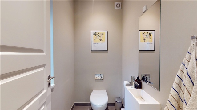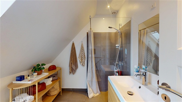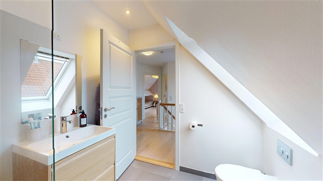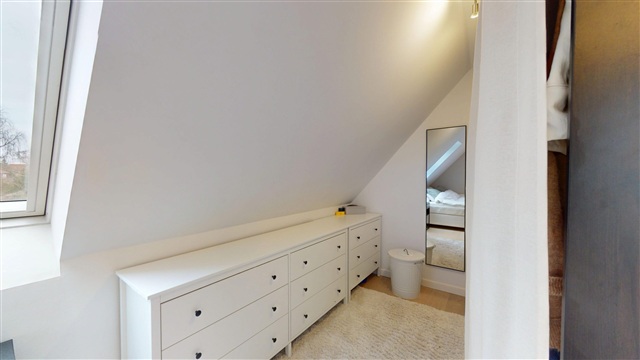 På første sal ligger den private soveafdeling bestående af et stort og fredeligt master bedroom med god skabsplads samt to rummelige værelser, som nemt kan indrettes som børneværelser, gæsteværelser eller kontor. Et stort badeværelse med moderne faciliteter fuldender denne etage og tilbyder god plads til familiens behov.