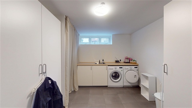 Yderligere giver den beboelige kælder en ekstra dimension til boligen med to store værelser, der kan anvendes til diverse formål såsom teenagerafdeling, hjemmekontor, hobbyrum eller gæster. Derudover er der et ekstra badeværelse med badekar, som skaber en ideel ramme for afslapning. Et funktionelt bryggers med vaskemaskine, tørretumbler samt god opbevaringsplads rummer kælderetagen også.