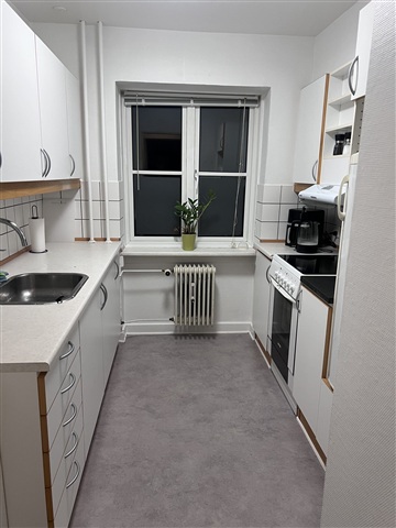 Centralt beliggende i Faaborg findes denne lejlighed med fire værelser, som byder på to soveværelser, en stue samt et pænt køkken og badeværelse. Der er mulighed for at skabe en mere rummelig stue ved at sammenlægge et af værelserne med stuen.Betaling for el sker direkte til forsyningsselskabet, mens varme og vand afregnes via acontobetaling, som reguleres én gang årligt. Der er parkeringsmuligheder tilknyttet ejendommen, og beboerne har adgang til fælles vaskefaciliteter samt et privat depotrum i kælderen.
