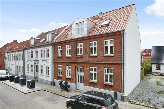 Denne lejlighed fremstår moderniseret med bl.a. nyt køkken, badeværelse og vinduer. Den har en dørtelefon og en rummelig altan, der vender mod vest. Ejendommen rummer et hyggeligt haveanlæg, som kan nydes af beboerne.Boligen er placeret i et charmerende, ældre kvarter med atmosfære, kun ti minutters gang fra både gågaden og byens centrum. Til lejligheden hører desuden et separat depotrum.
