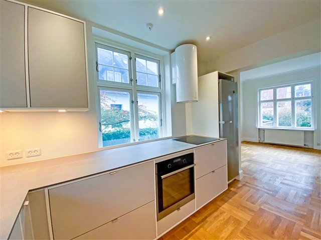 Denne attraktive villa, beliggende på Ellinorsvej i Charlottenlund, breder sig over tre plan og byder på stueplan med de centrale opholdsrum, mens førstesalen rummer boligens værelser. Kælderen indeholder yderligere rummelige arealer med fuld gulvvarme, hvilket øger komforten. Den tilhørende have dækker 630 kvadratmeter, hvilket giver plads til både en hyggelig terrasse og flere modne frugttræer, i en størrelse der hverken er for omfattende eller for beskeden.Det skal bemærkes, at boligen til foråret får en ny hvid facade, og den udlejes umiddelbart efter istandsættelsen for en periode på to år. Indretningen omfatter en elegant entre og hall, et nyere køkken samt en spisestue, der er ført en-suite sammen med den rummelige stue, som har direkte adgang til haven. Derudover findes et ekstra rum, der kan anvendes som stue eller kontor. Førstesalen har et stort badeværelse med bruseniche og fire værelser, hvoraf ét har adgang til en altan. I kælderen findes flere disponible rum, et bryggers med vaskefaciliteter samt endnu et badeværelse med brus.