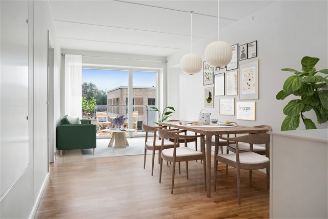 Fra stuen er der direkte udgang til en privat altan, som kan opleves som en forlænger af boligens opholdsrum. Altanen ligger højt og byder på en dejlig udsigt og lys, så uanset om det gælder morgenkaffen, solens stråler midt på dagen eller lange, varme sommeraftener, tilbyder den et skønt uderum.