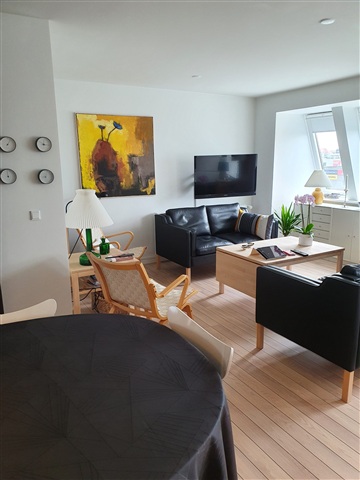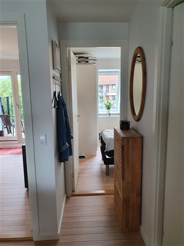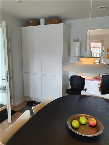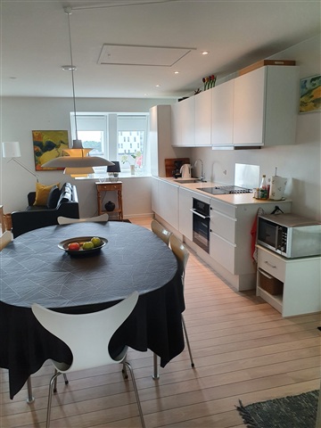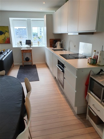 Lejligheden, som er både lys og rummelig, er placeret i en nyistandsat bygning på en af de mest attraktive adresser i Hjørring. Herfra er der kun få minutters gang til både Metropol shoppingcenter og byens gågade.Boligen rummer to værelser med indbyggede skabe, et badeværelse samt et åbent køkken kombineret med spisestue og opholdsrum i ét samlet rum. Køkkenet, der stammer fra Designa, er udstyret med grebsfrie låger i hvidlak og en bordplade i kompaktlaminat, hvor vasken er integreret. Samtlige nødvendige hårde hvidevarer medfølger, herunder vaskemaskine, tørretumbler, emhætte, opvaskemaskine, induktionskomfur, ovn samt et køle-/fryseskab.