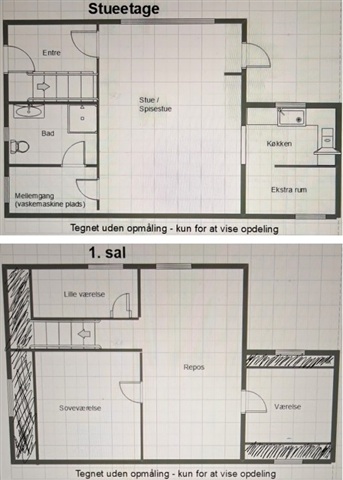 i stueplan er der entre med trappe til 1. sal, stor stue med spiseplads og udgang til have, køkken, mellemgang med plads til vaskemaskine samt badeværelse.