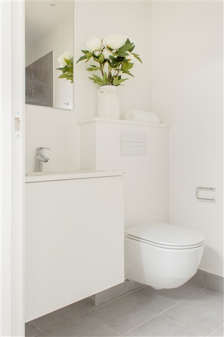 På førstesalen findes en repos samt tre lyse og regulære værelser, alle forsynet med franske altaner, hvilket tilfører rummet ekstra lys og luft. Desuden er der et badeværelse med væghængt Ifö-toilet, armaturer fra Hans Grohe og skabslåger med push-låsefunktion, der bidrager til et stilrent design.