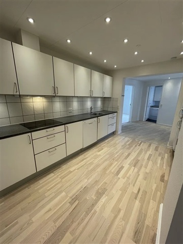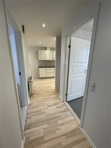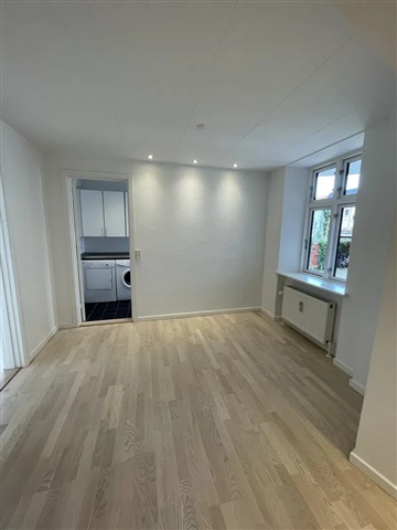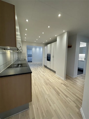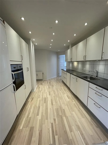 Denne lejlighed præsenterer sig med et rigt lysindfald og en attraktiv, central placering. Boligen står klar til indflytning og tilbyder en behagelig stemning, der gør den let at falde til i.Indretningen består af et åbent køkken-alrum, hvor det langstrakte, hvide køkken er udstyret med indbyggede spots i loftet, hvilket sikrer god belysning samt rige muligheder for både opbevaring og madlavning. En enkel og praktisk løsning præger køkkenet med en bagvæg beklædt med fliser og en mørk bordplade som kontrast. De integrerede hvidevarer fuldender det funktionelle rum, der samtidig fungerer som boligens samlingspunkt og giver plads til hyggelige måltider.